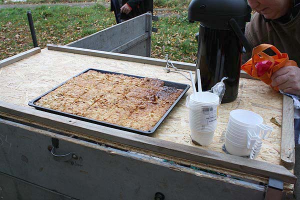 Der Duft von frischem Blechkuchen lockte alle zum Anhänger.