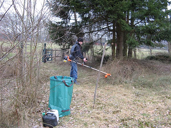 Hier ist André am Freischneider im Kampf gegen den Wildwuchs.