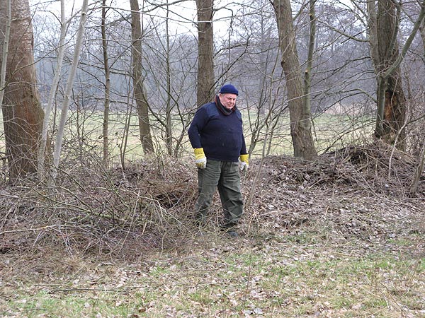 Die Arbeitsgruppe machte sich daran die angefallenen Buschmengen in die vorbereiteten Nischen zu ziehen.