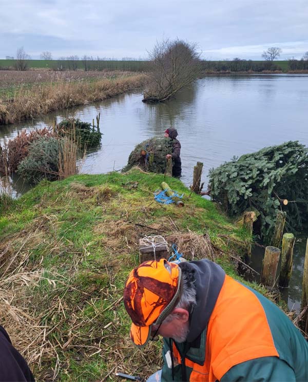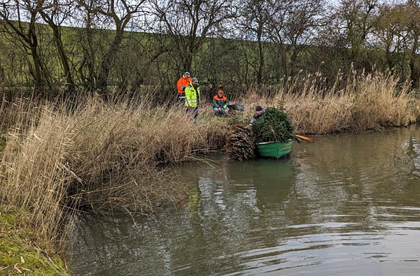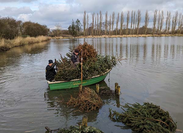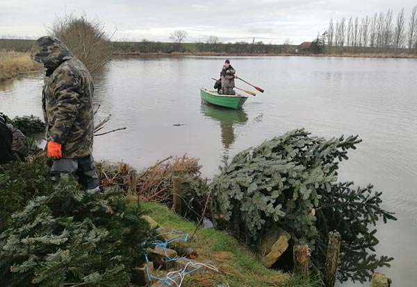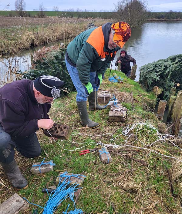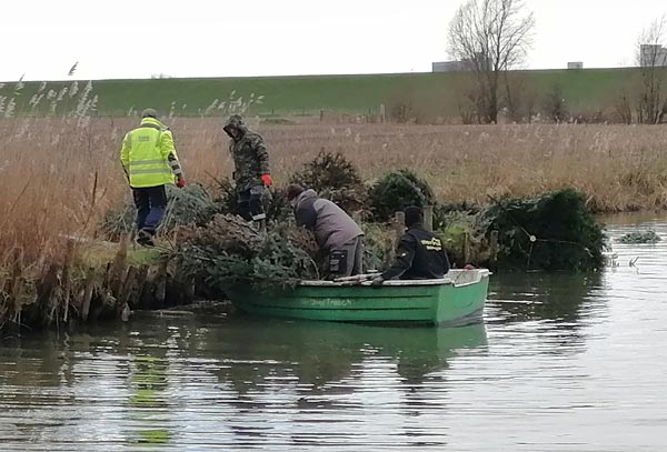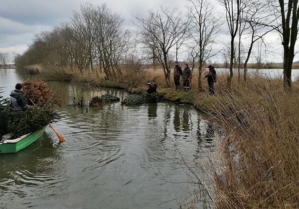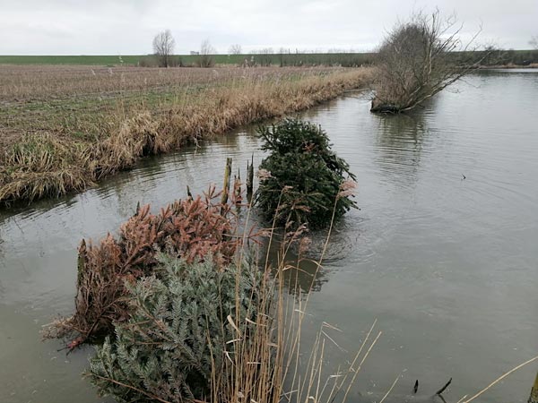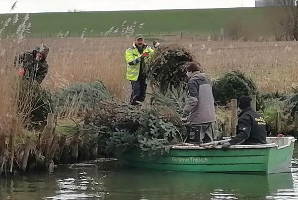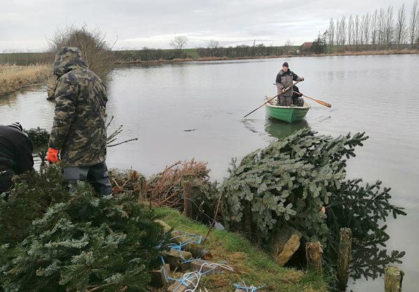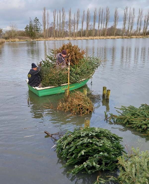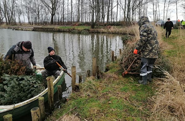 Die Weihnachtbäumchen flogen zielgenau ins Wasser; wurden wo nötig, mit Draht
