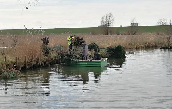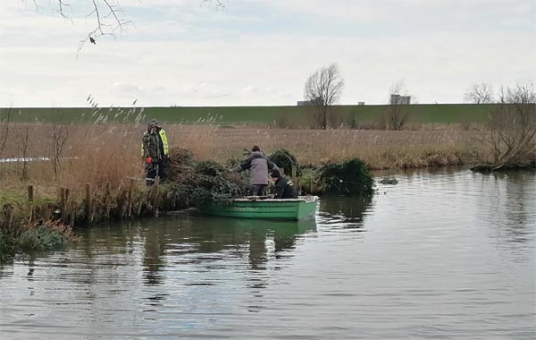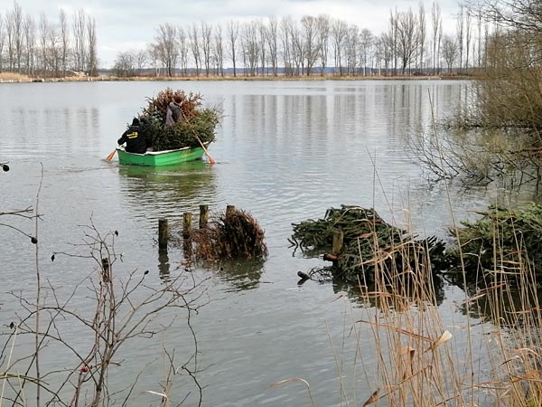 befestigt, damit sie nicht umhertreiben und später event. die Angler ärgern.