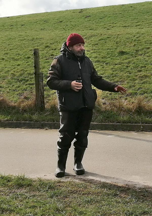 Wir waren schon am Betonplatz , als die Boots-Crew auf der Deichseite ankam