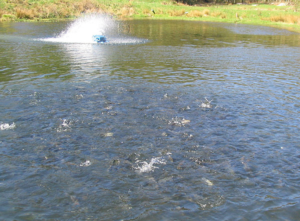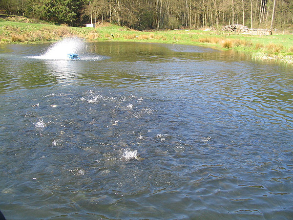 verteilt das Sauerstoffreiche Wasser gleichmäßiger im ganzen Teich ..