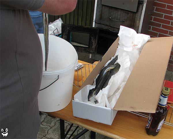 Olaf bereitet seine mitgebrachten Aale vor ..