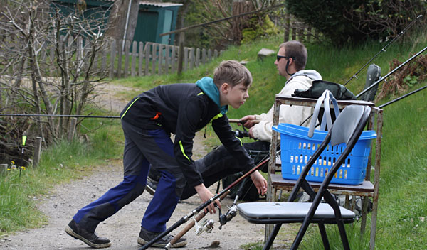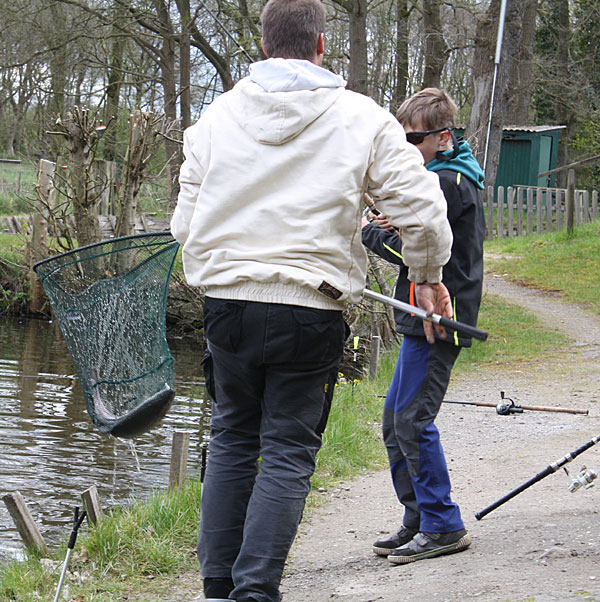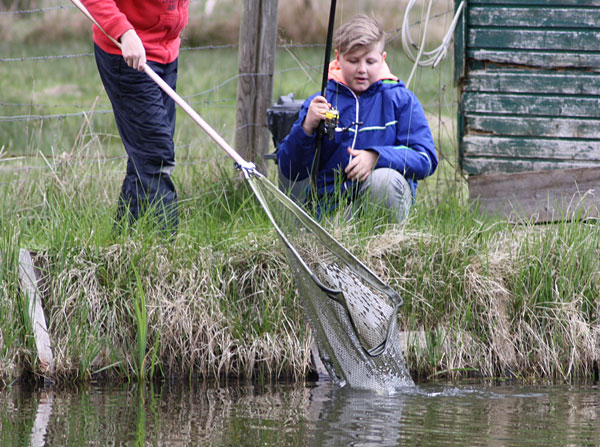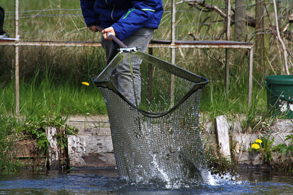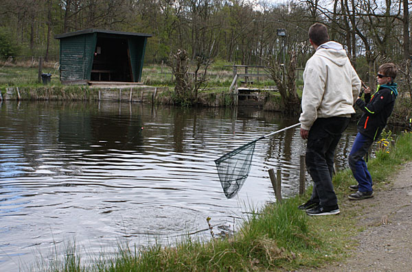 Moritz hingegen hilft Kumpel Jannis beim Keschern der ersten Forelle!