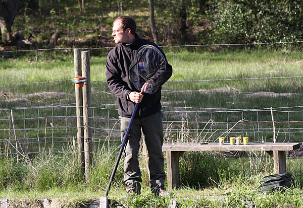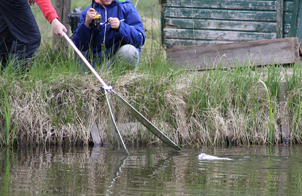 Moritz hilft wieder beim Keschern. Ein eingespieltes Team!
