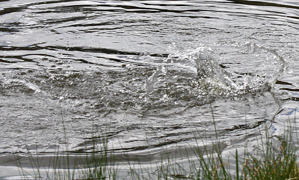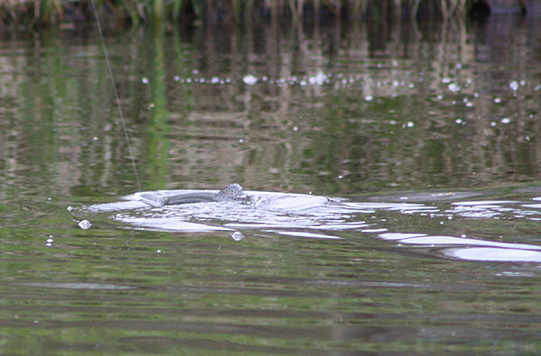 Doch, kann sein..Ulf hat unterdessen den Platz von Andreas eingenommen und prombt mit der neuen Methode (in die Luft gucken und einfach kurbeln) seine erste Forelle des Tages am Band.
