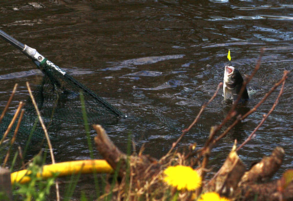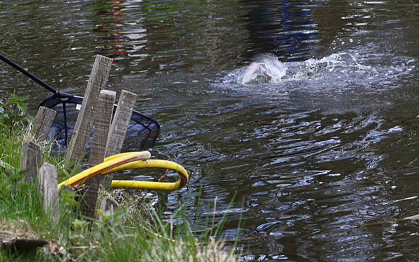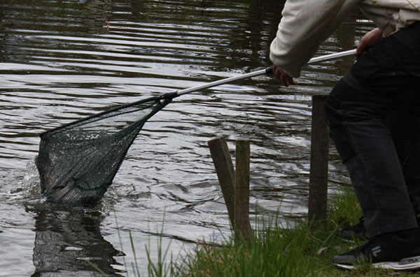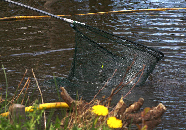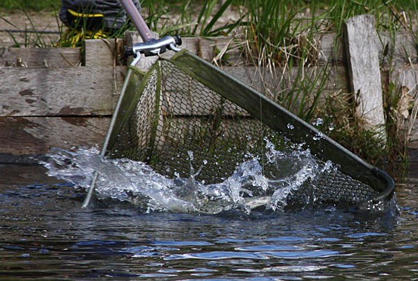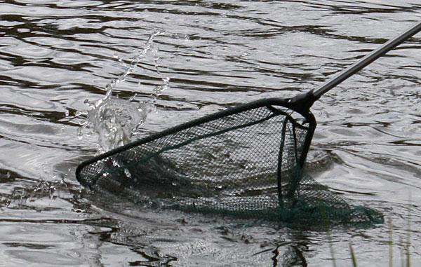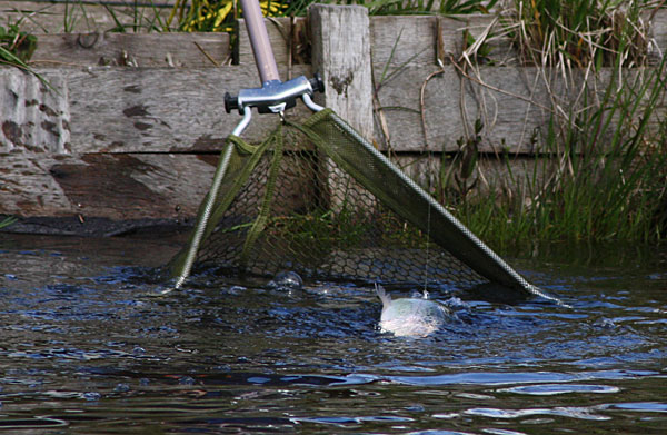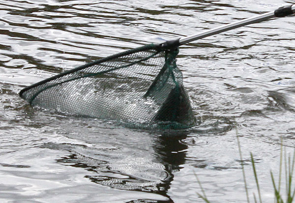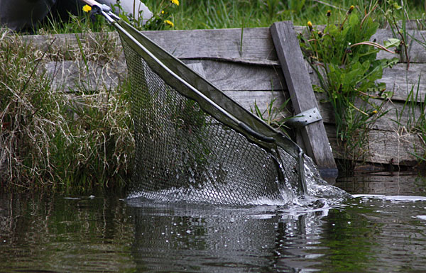 Mit Ruhe den Fisch über den Kescher ziehen und eingesackt!