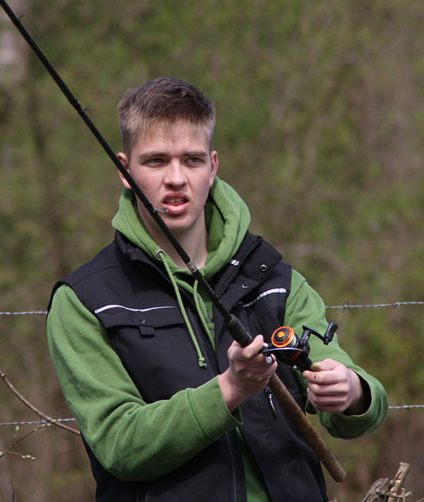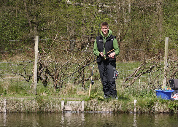 Jannis hingegen drillt bereits Fisch Nr. 2.