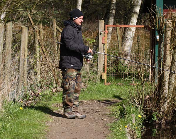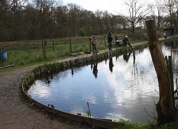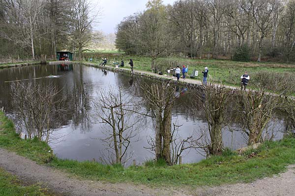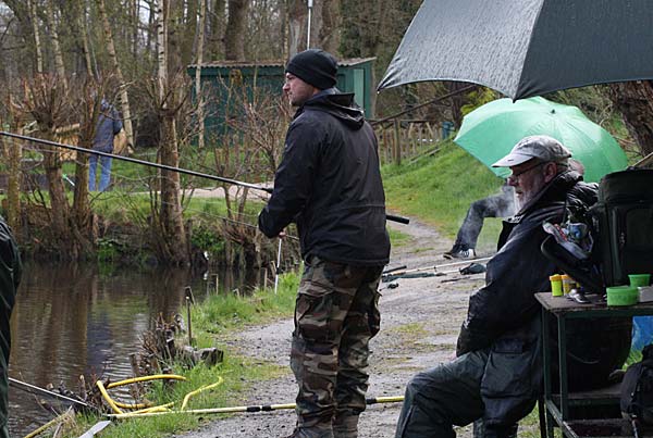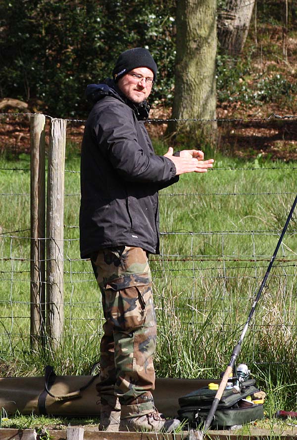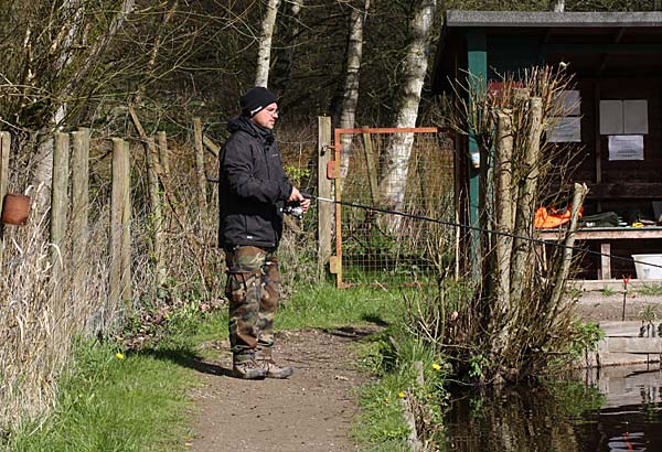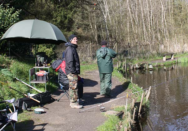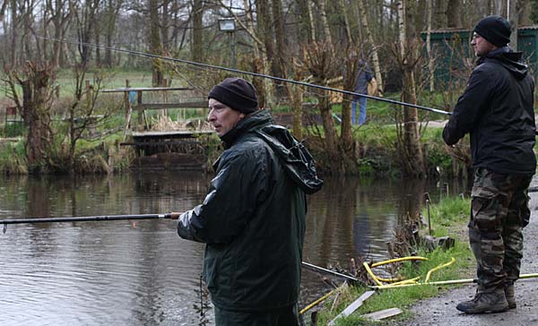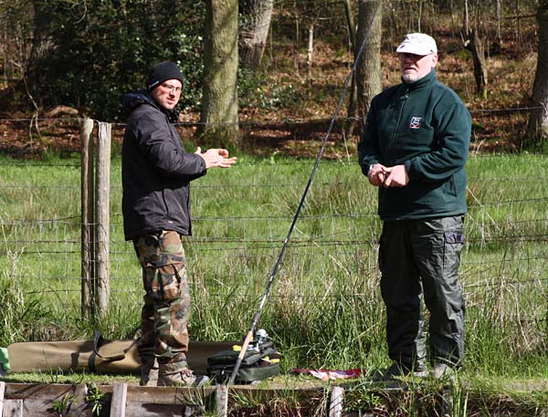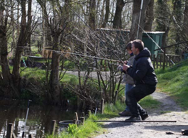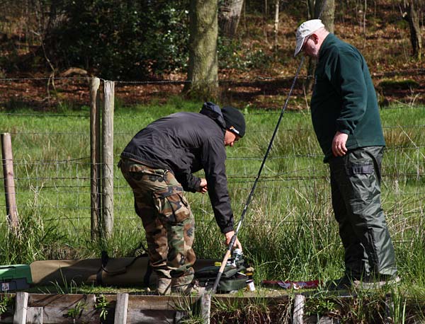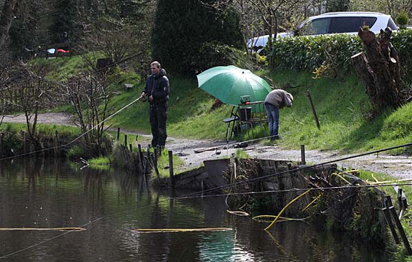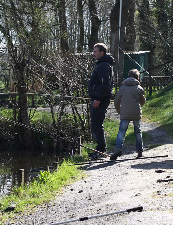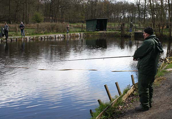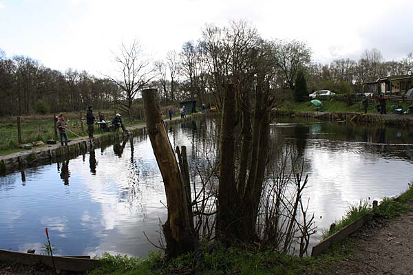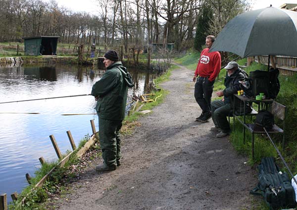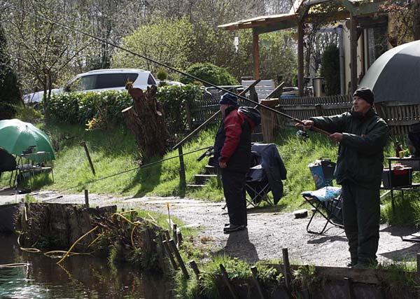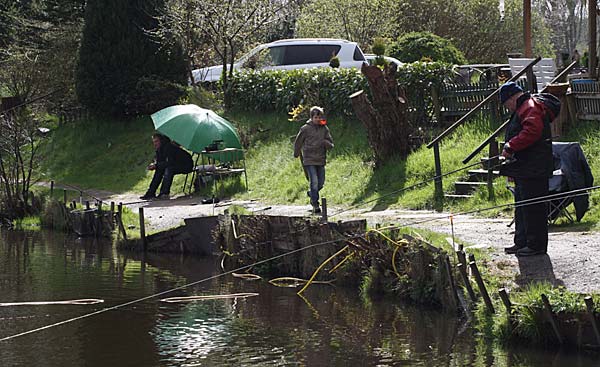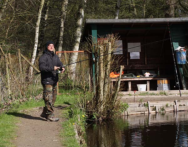 Das "Wandern" beginnt.... auf der Suche nach den willigen Forellen. Aber das ist das Gute, wenn man den Teich komplett mietet: kein Ärger mit neidischen Mitanglern, es bleibt alles im "Verein".