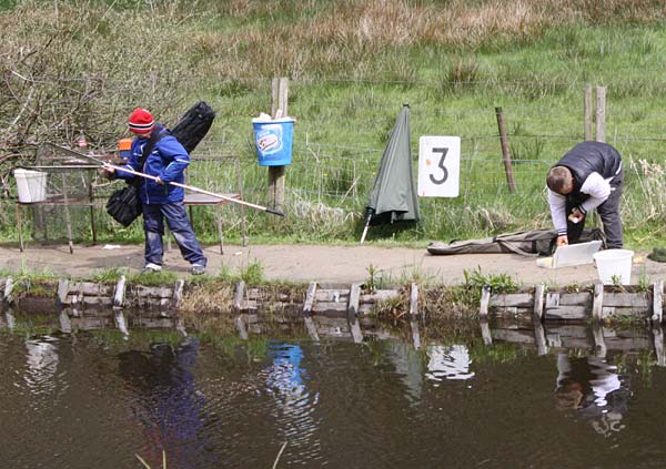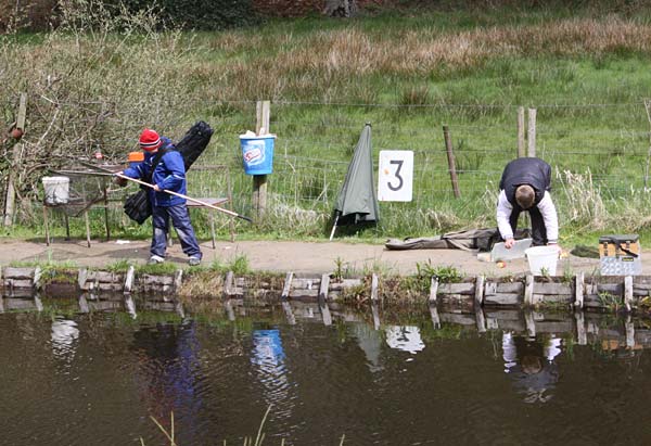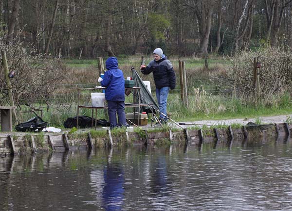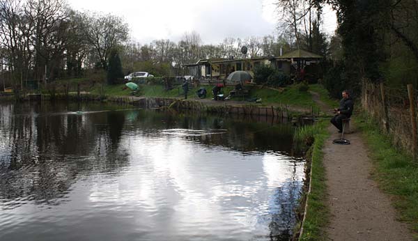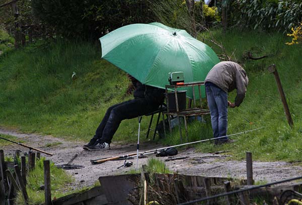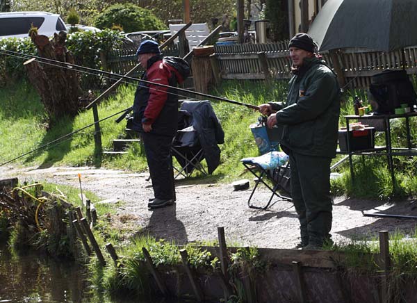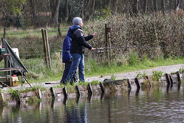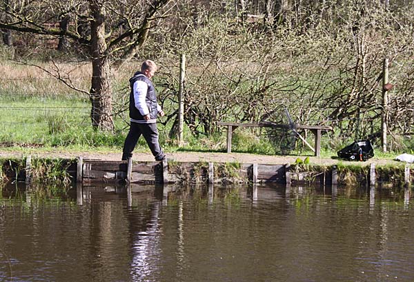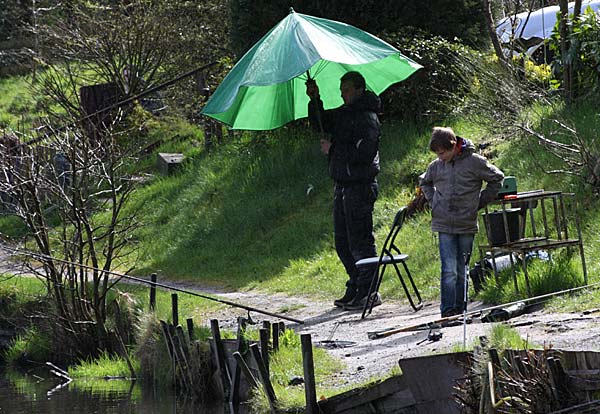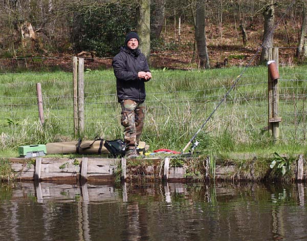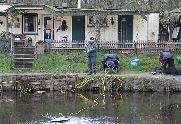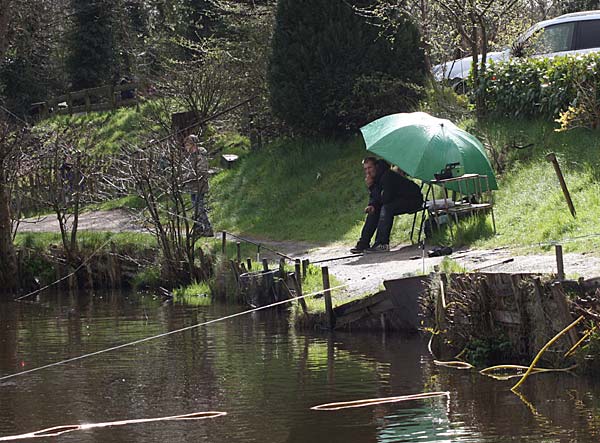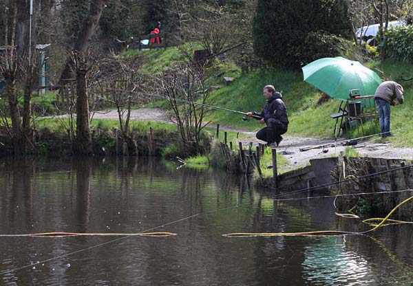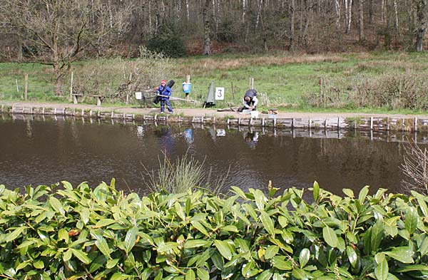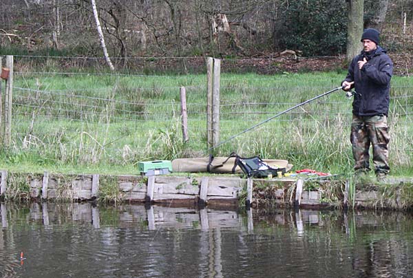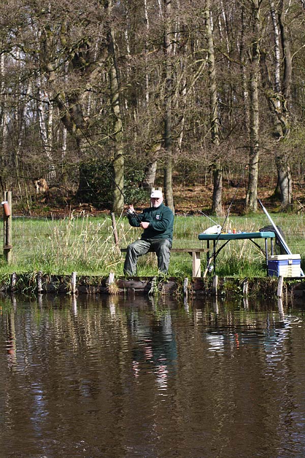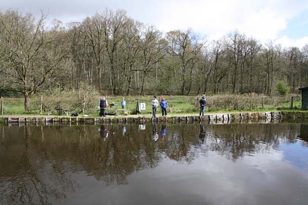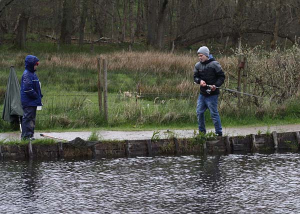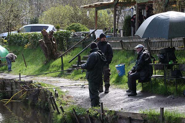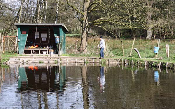 Das "Wandern" beginnt.... auf der Suche nach den willigen Forellen. Aber das ist das Gute, wenn man den Teich komplett mietet: kein Ärger mit neidischen Mitanglern, es bleibt alles im "Verein".