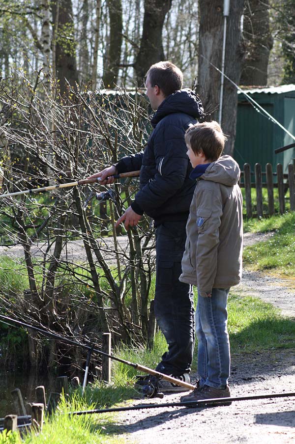 Gewässerwart Jan mit seinem Sprößling Cedric ..