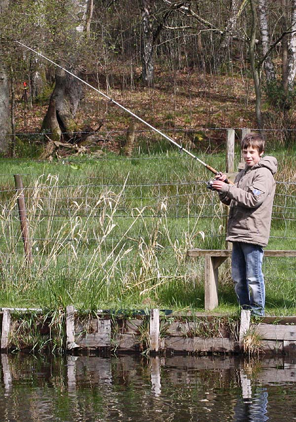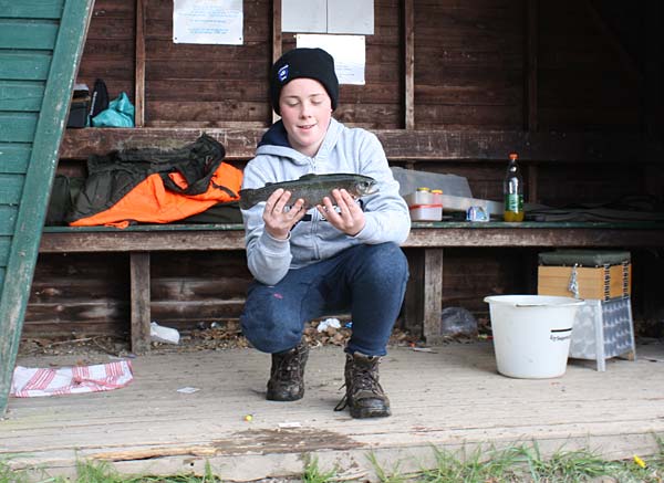 auf Janni´s Köderleihgabe! Aber so hatte jetzt jeder Jugendliche mindestens eine Forelle überlistet! Nur bei Uwe wollten sie einfach nicht anbeißen....