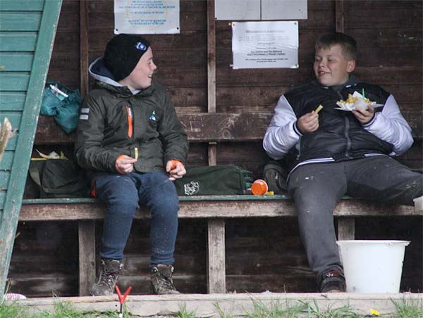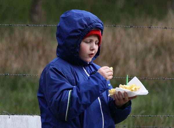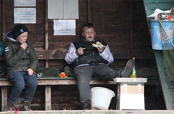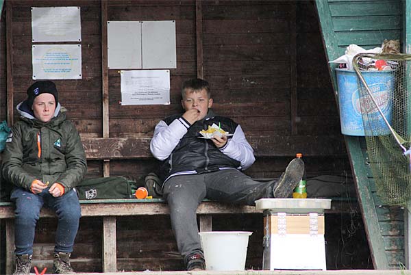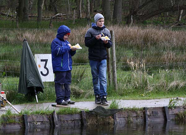 Zum Glück gab es während des Angelns nur zwei kräftige Graupelschauer inklusive Donner. Die verbleibende Zeit konnte man sich an den kräftigen Sonnenstrahlen (und den Pommes) aufwärmen.
