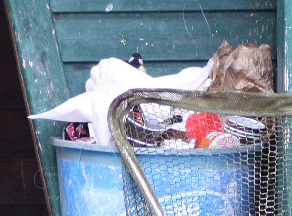 .. eine Meise durchwühlt den Abfallkorb ..