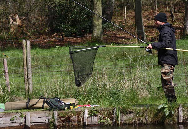 .. und die Spannung der Rutenspitze erst nachlassen, wenn der Fisch über dem Netzt ist ..