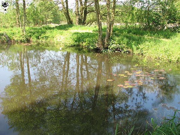 .. Bäume recht; dahinter und links die aufkommenden Binsen ..