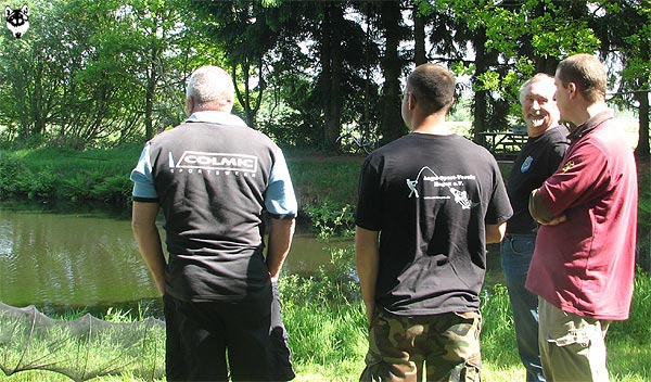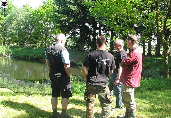 Hans, Mathias, Andreas und Quietschi ..sitzend Reinhardt .. rechts der GRÜNE Eimer mit Teichwasser..