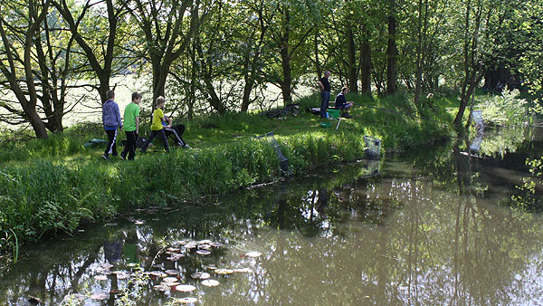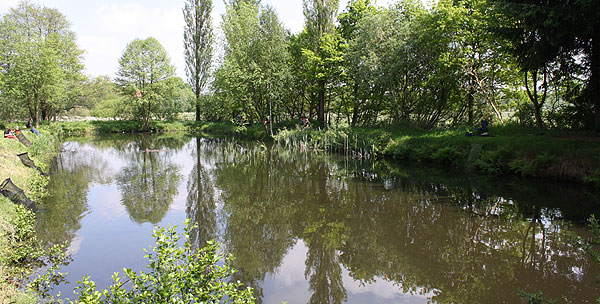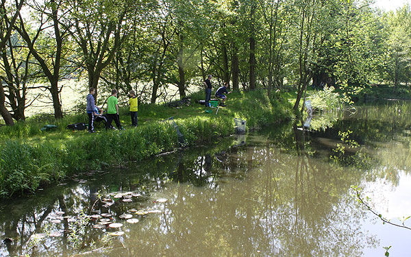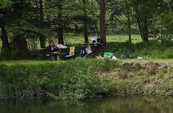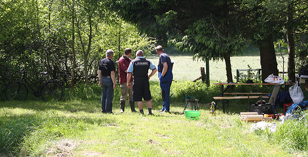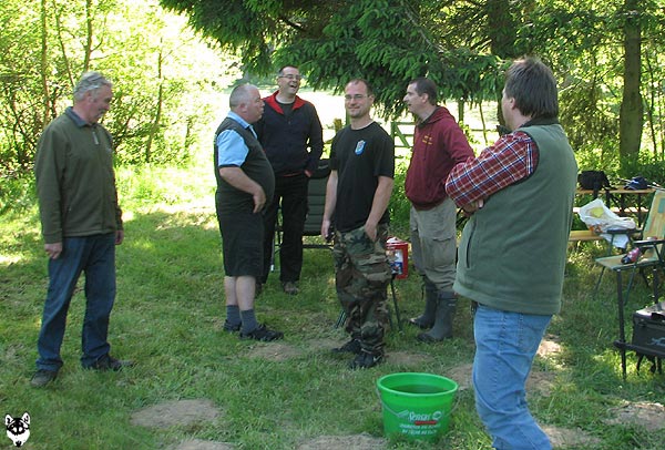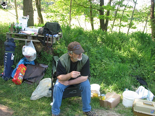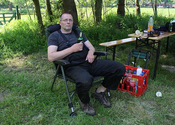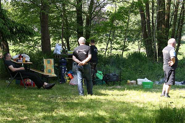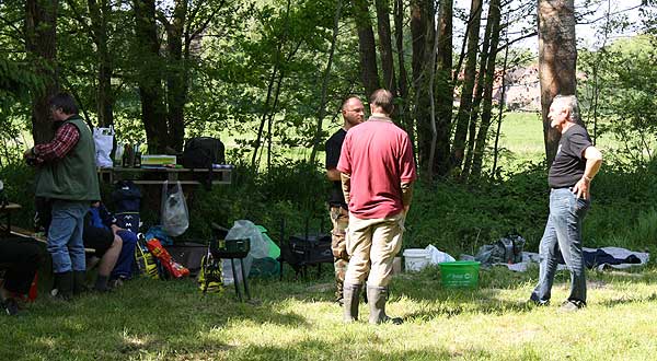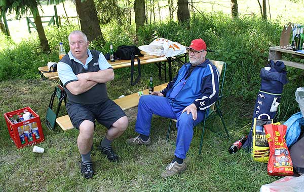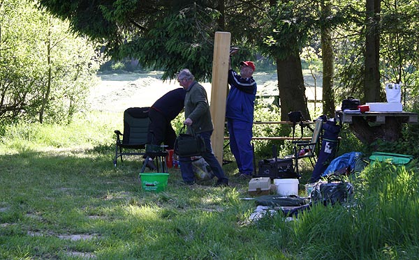 Hans, unser 1.Vorsitzender, hatte bei unsere Ankunft am Teich schon Tisch und Sitzplätze aufgebaut.