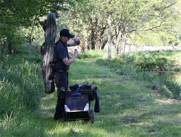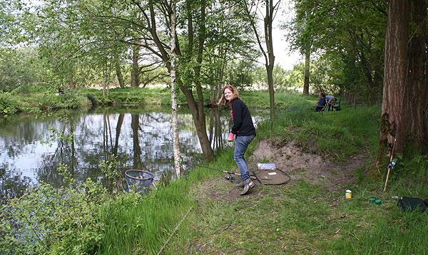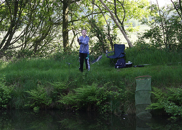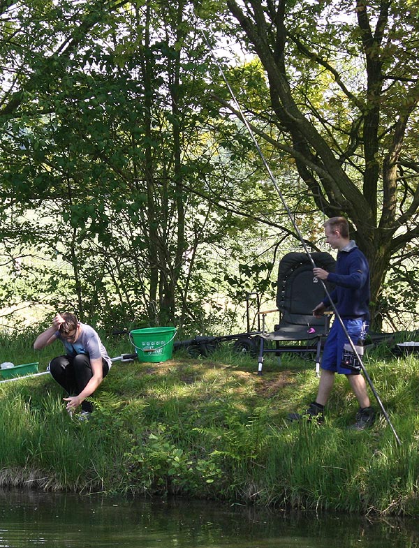 Justin hatte auch schon einen Karpfen am Haken, der ging leider im Drill verloren ..