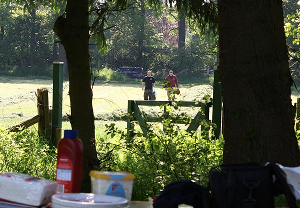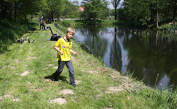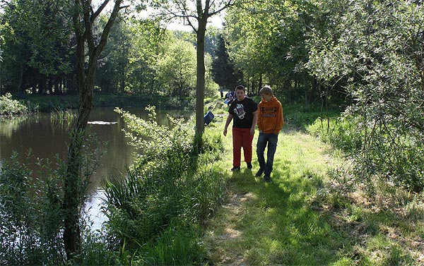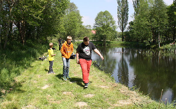 Uwe und Andreas drehen noch eine Runde um den Teich .. hier sind sie gerade bei Nils