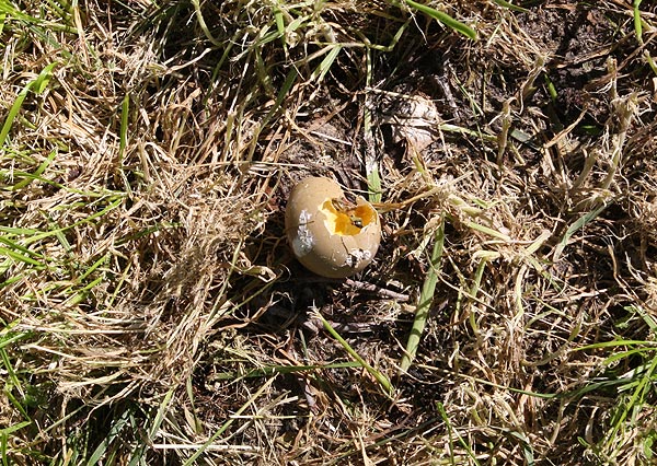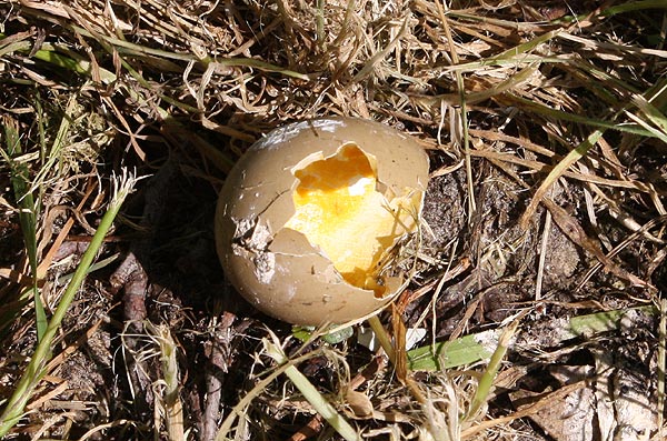.. mitten auf dem Weg ein frisch geöffnetes Vogelei; welcher Räuber hier wohl aktiv war ? ..