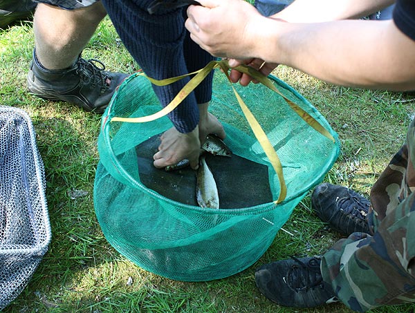 .. mindestens 4 Karpfen wurden "versemmelt" und gingen vor dem Unterfangkescher verloren;