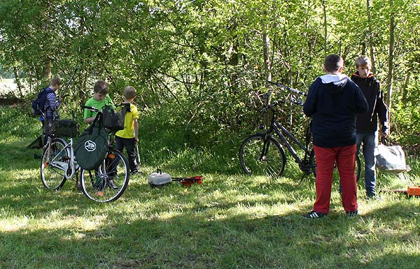 .. die Fahrräder werden "gesattelt", die Angelgeräte werden verstaut ..
