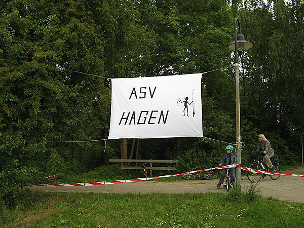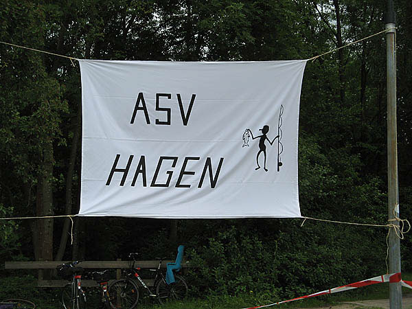 .. das alte Bettlaken mit Gunthers Karikatur eines Anglers kam gut an ..