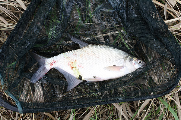 Hier ein weiterer wichtiger Mitspieler, eine schöne Brasse mit ein paar Maden am Haken überlistet.