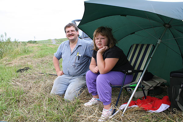Papa Heiko und Julia warten auf den Anbiss.