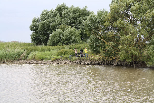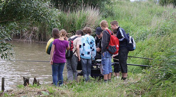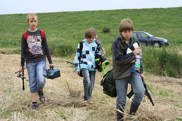 Daneben erklären Heiko, Olaf und Mathias, wie man mit der Angel richtig auswirft und die Montagen fängig einstellt.
