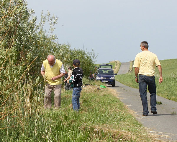 Viele Büsche, viele Kleinfische, diese Theorie ging am Ende auf. In der rechten Bildseite kämpft im gelben T-shirt Ulf mit den ungeduldigen Neulingen und den üblichen Problemchen. Leider konnte Ulf nicht bis zum Ende der Veranstaltung dabei bleiben.
