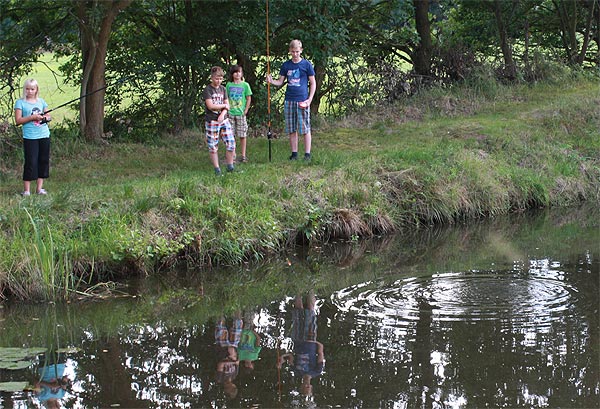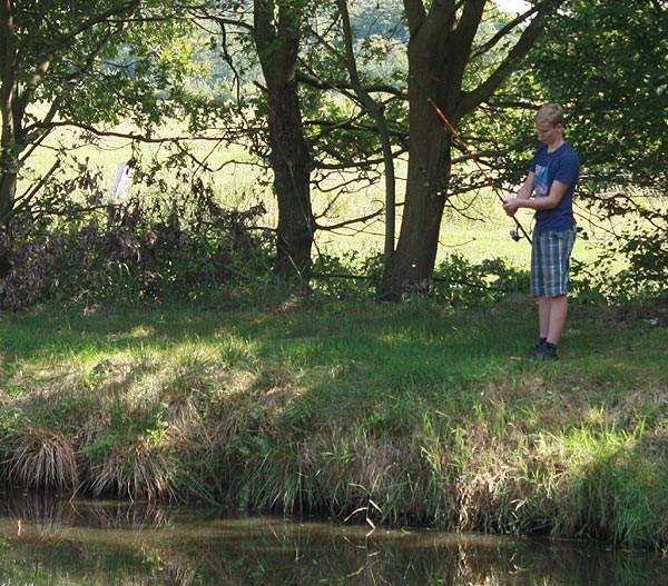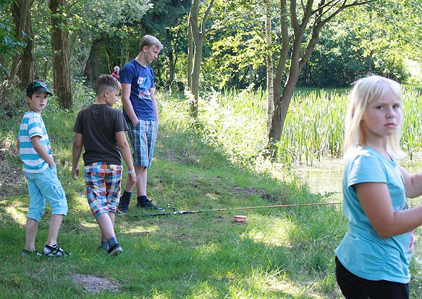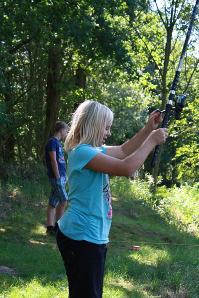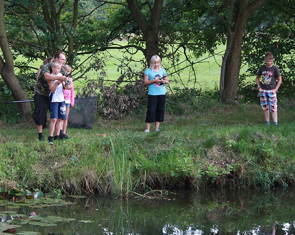 Für einige standen erstmal Wurfübungen auf dem Programm, denn einige hatten noch nie eine Angel in der Hand.