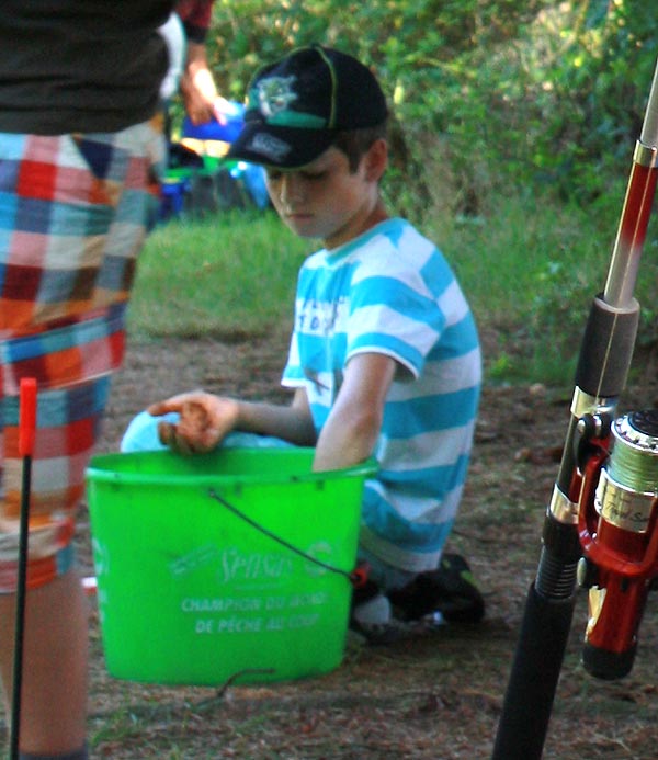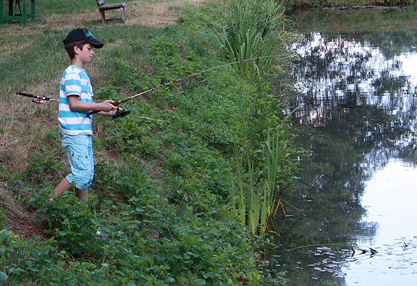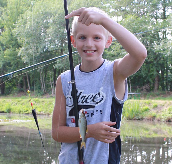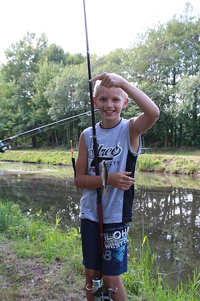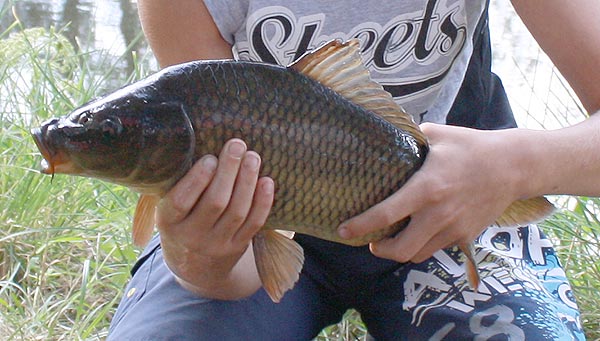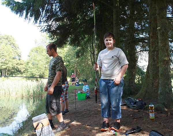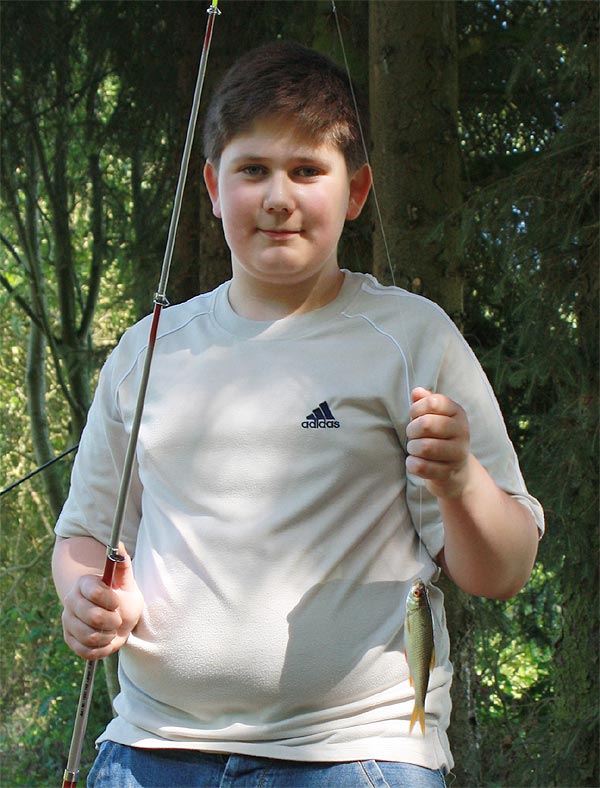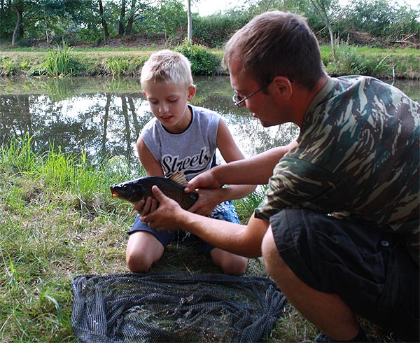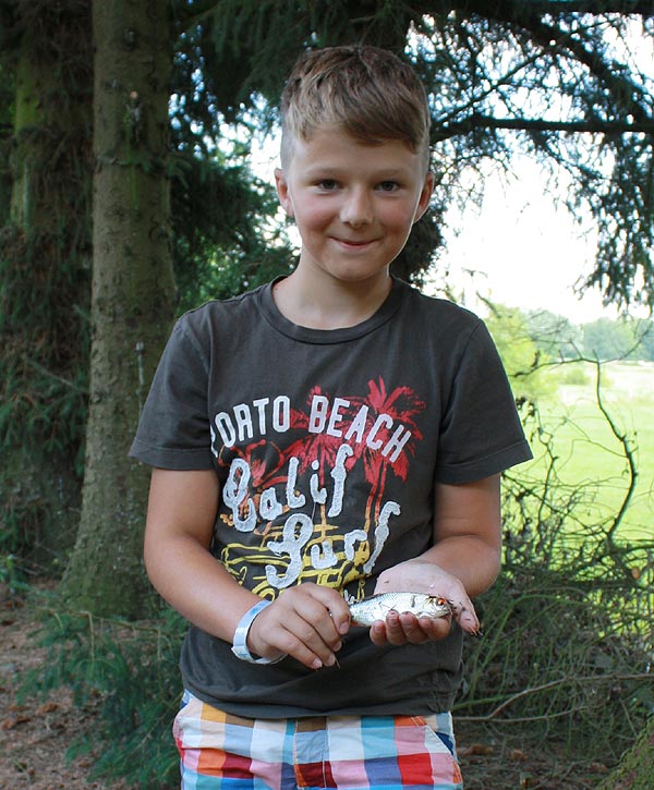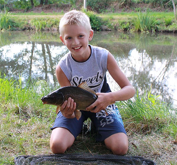 .. Robin hatte davor schon 2 Karpfen in den Seerosen ausgehakt und konnte jetzt endlich stolz