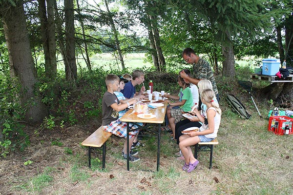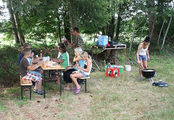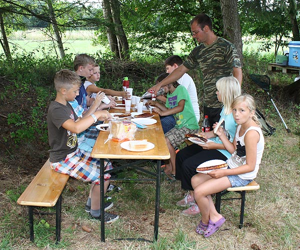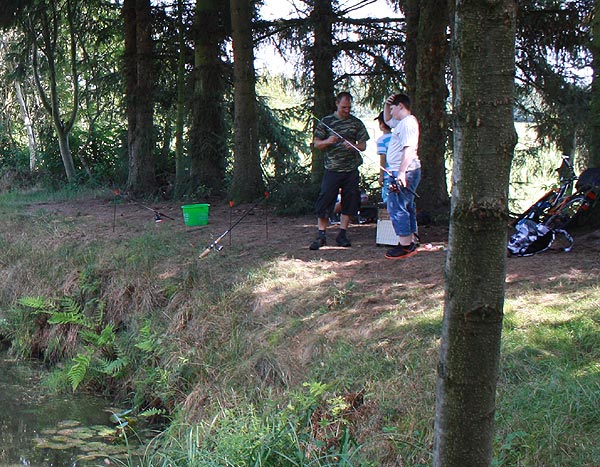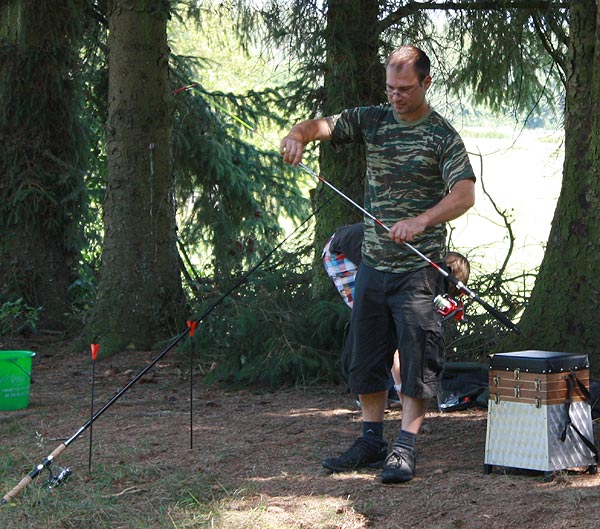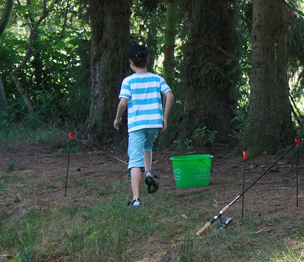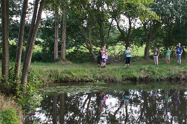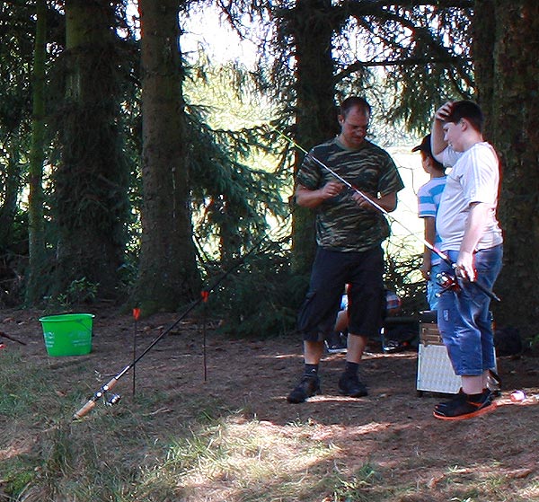 Nachdem alle Eltern den Abholpunkt kannten wurden am Ufer die Angeln startklar gemacht.
