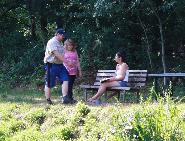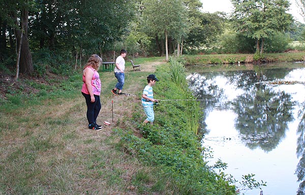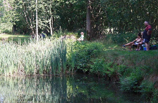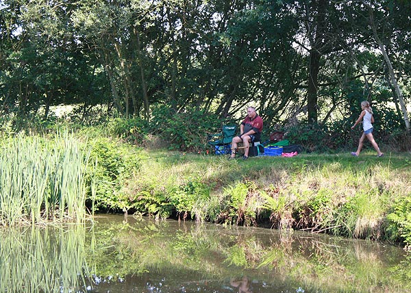 Pia angelt mit Oma und Opa an der Seite nahe an den Rohrkolben ..
