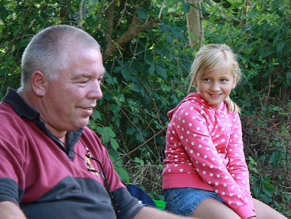 Opa und Enkeltochter, gemeinsam auf Fischzug ..