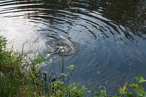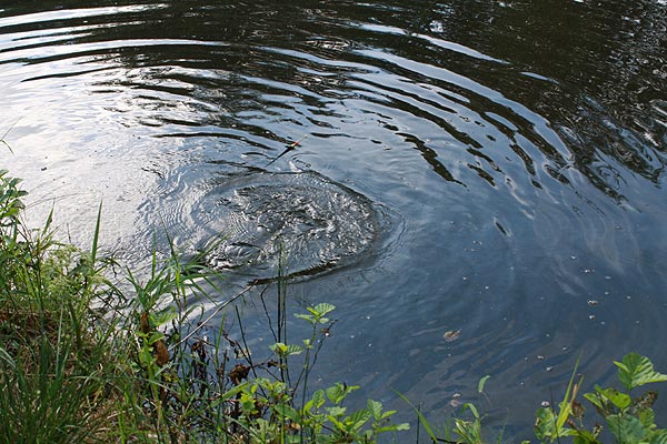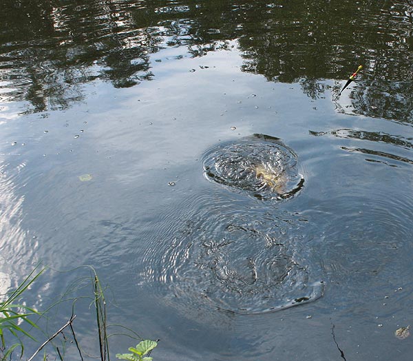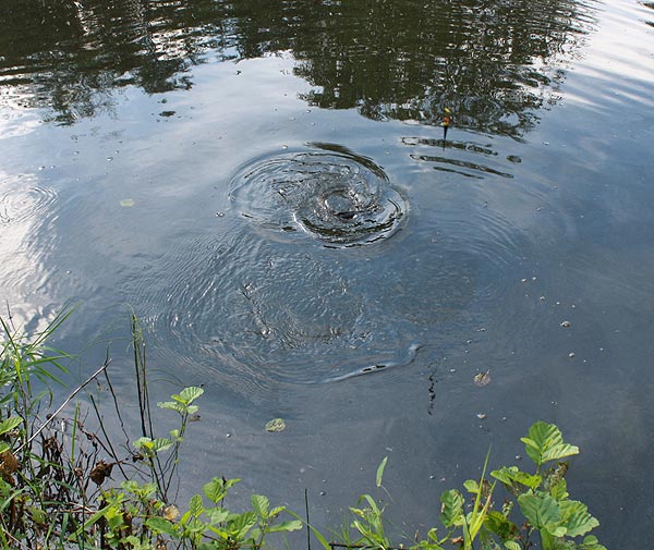 .. zum ersten mal zeigt sich der Karpfen an der Oberfläche ..