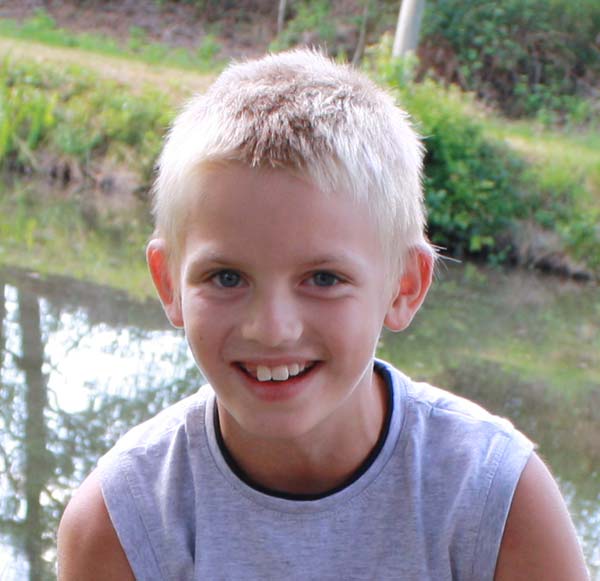 Justin; Patrick und Leon unter den Nadelbäumen ..