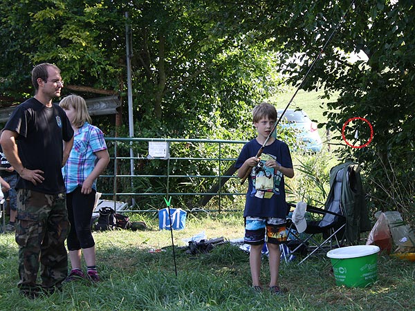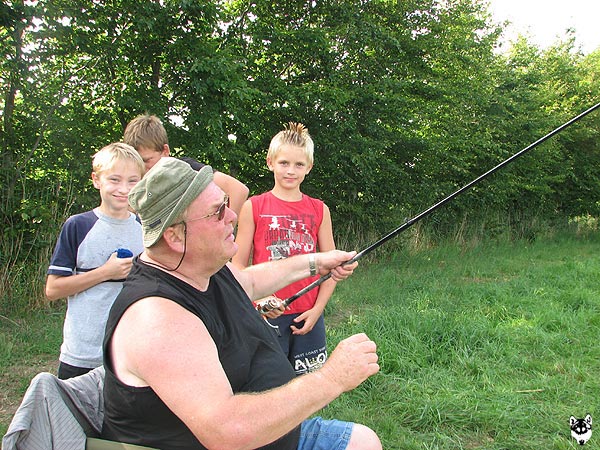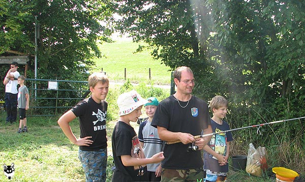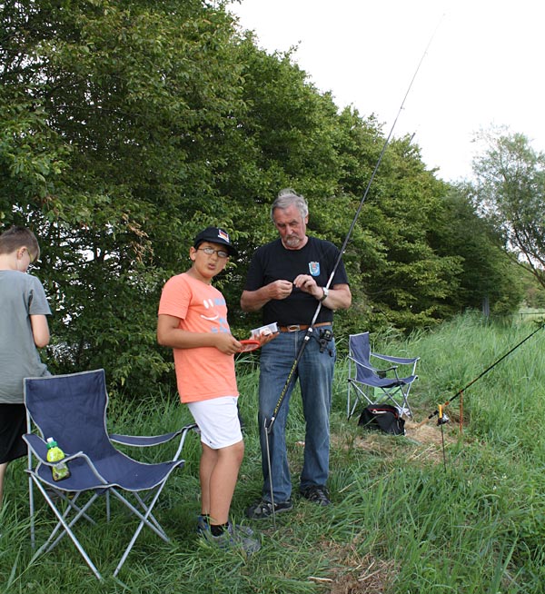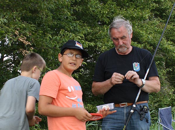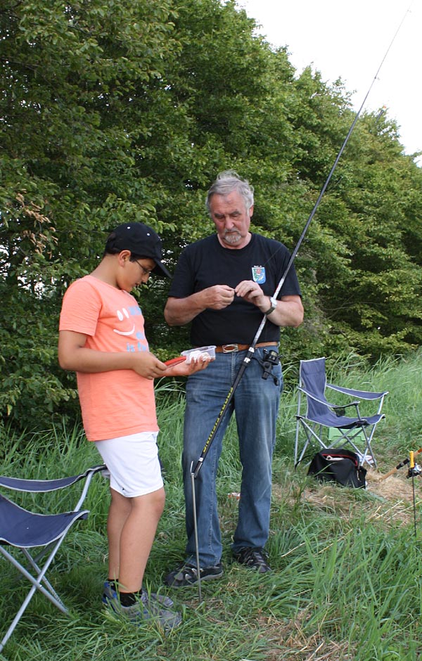 .. hier bekommt gerade Lukas von Uwe seine Angel überreicht ..