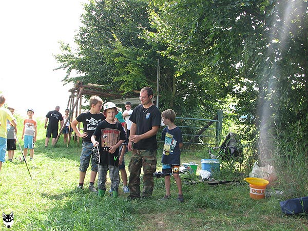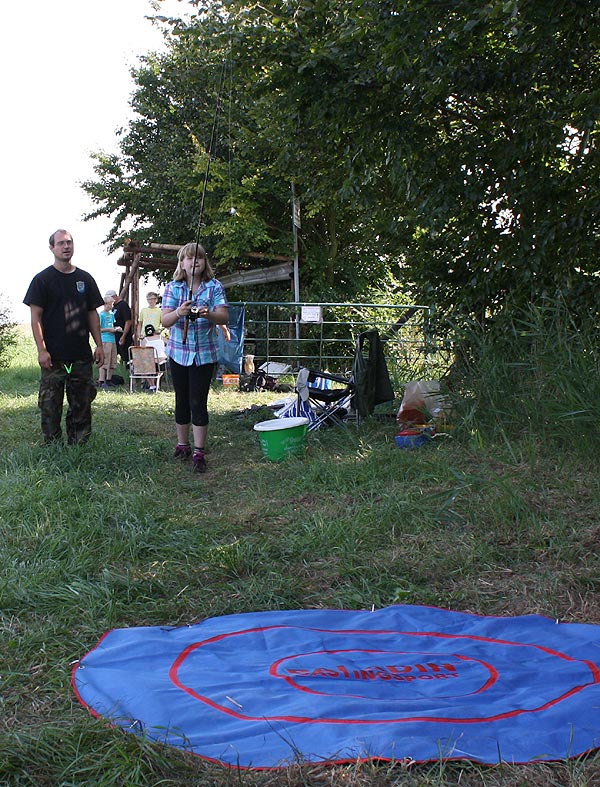 an einer weiteren Station lernten die Neulinge, ein Gewicht an der Rute, auf ein bestimmtes Ziel zu befördern.