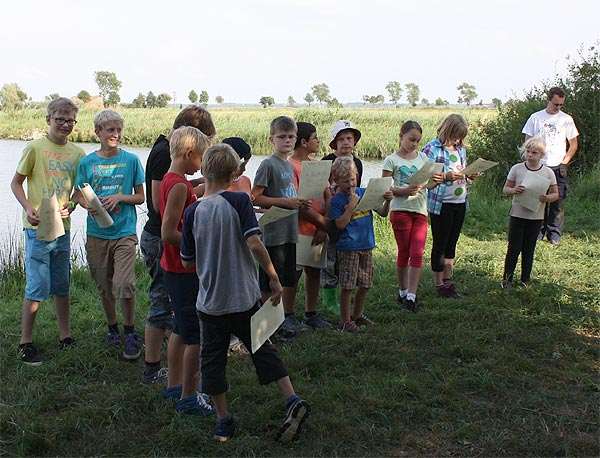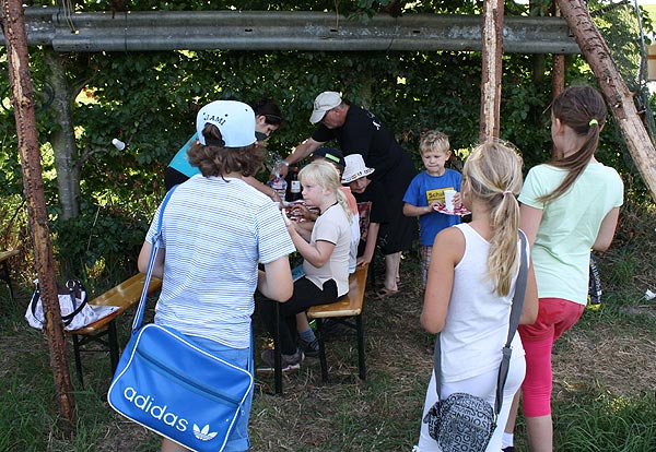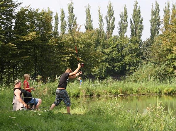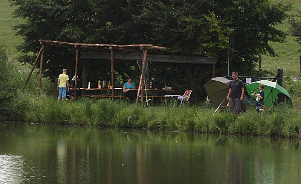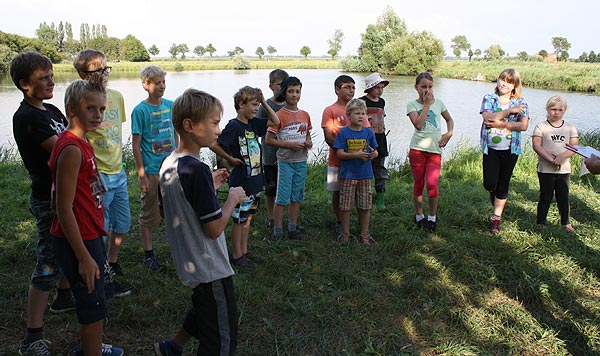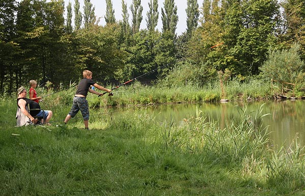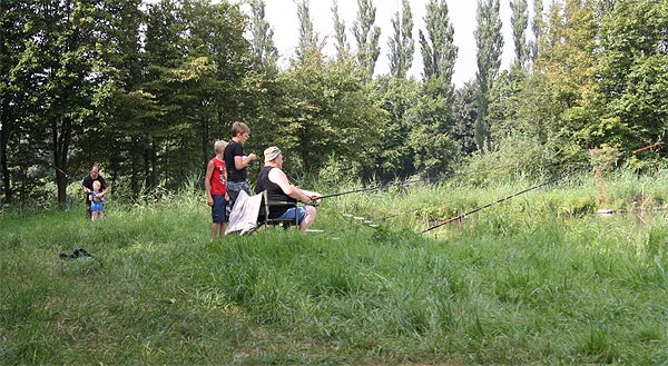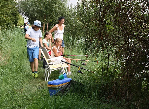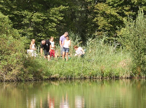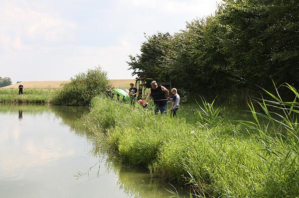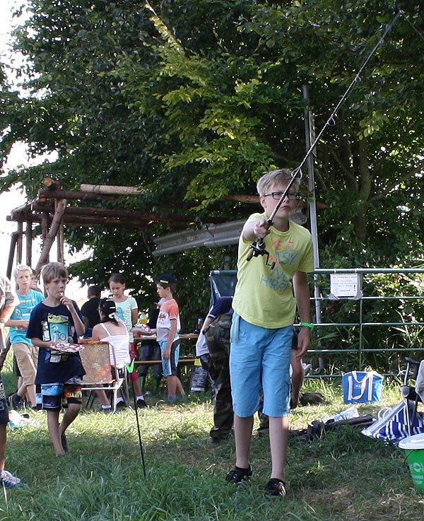 Jeder, der die beiden Stationen bewältigt hatte, konnte mit der Angel an den Teich gehen und Fische angeln ..