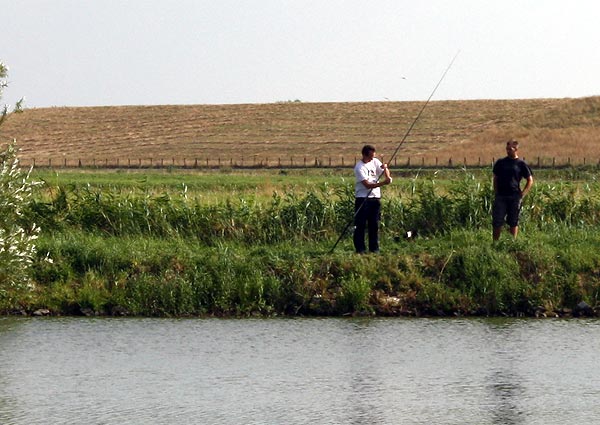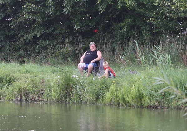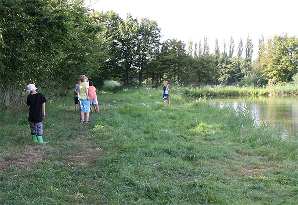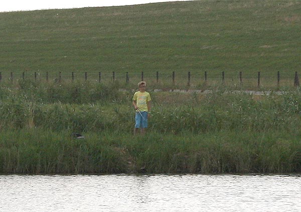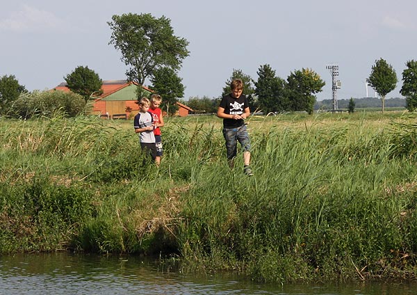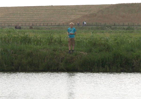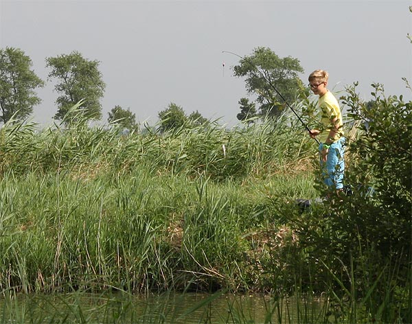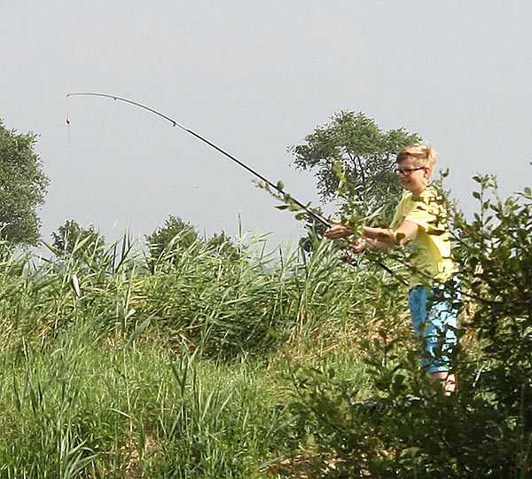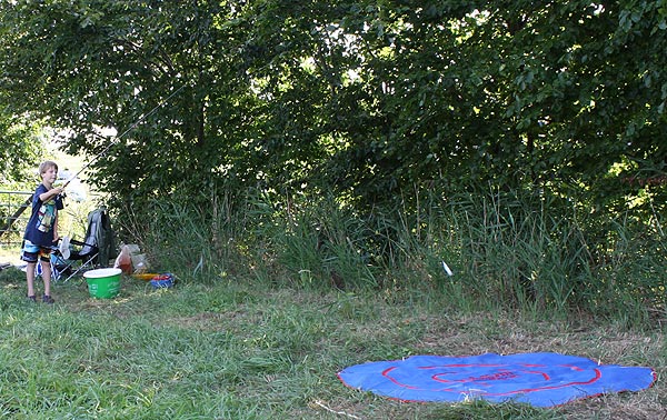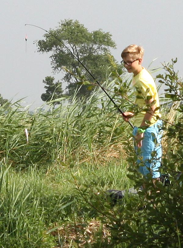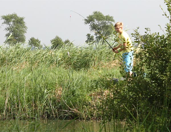 .. und Jonas angelt mal neben der Krautbank und mal am Busch entlang ..