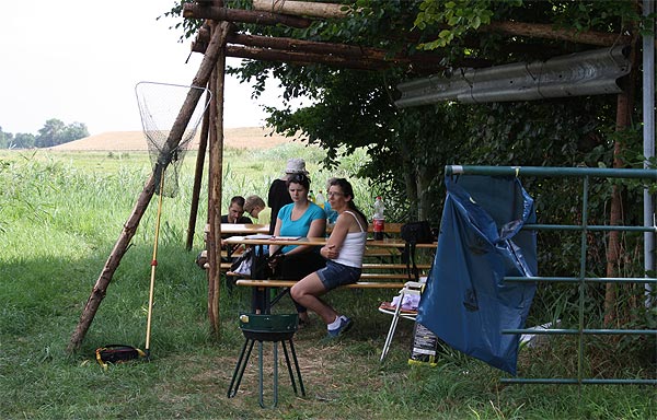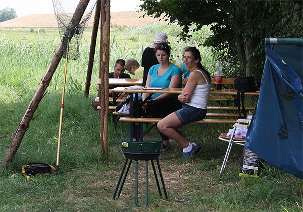 Mareike und Petra unterstützen das Team um die Junganglerschaar ..