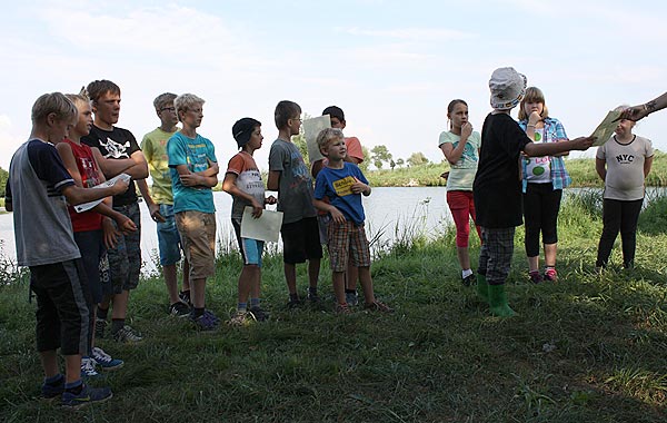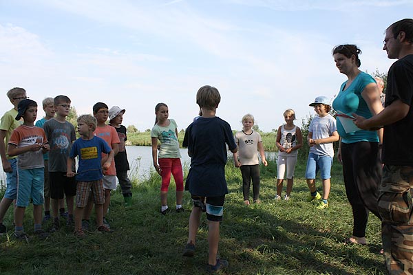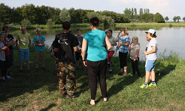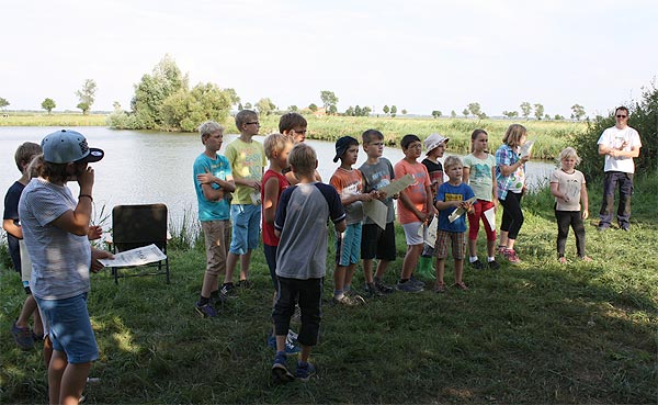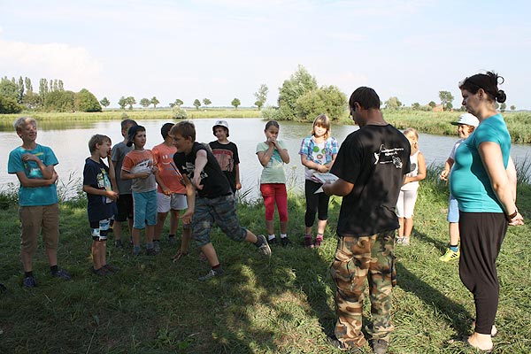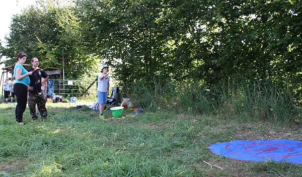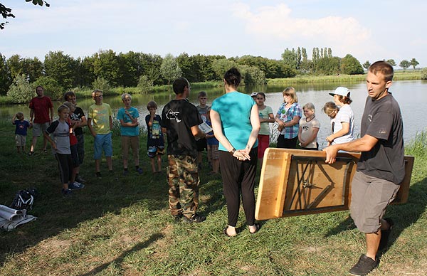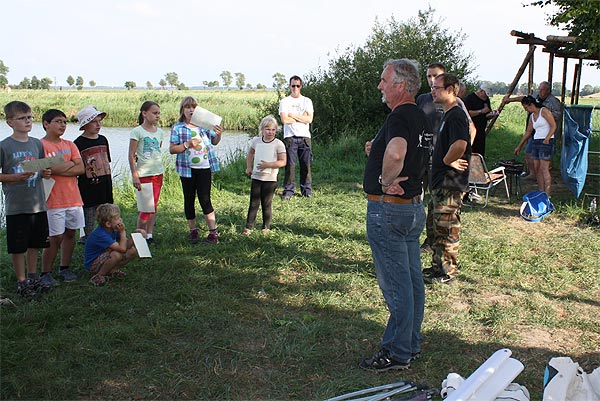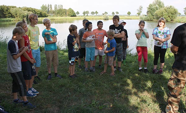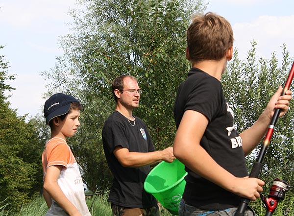Matze zeigt den Junganglern, wie man mit Gefühl, ein Gewicht an der Angel in ein bestimmtes Zielgebiet wirft ..