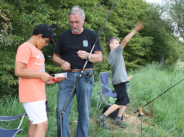 Maximilian lässt sich von Hans neue Maden auf den Haken stecken ..
