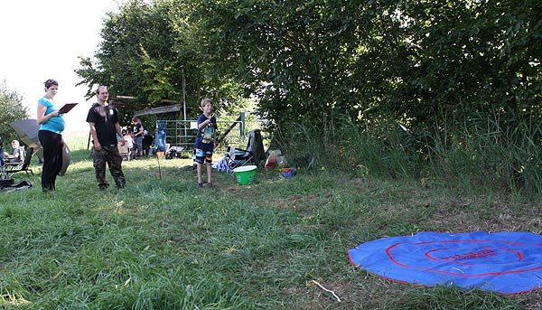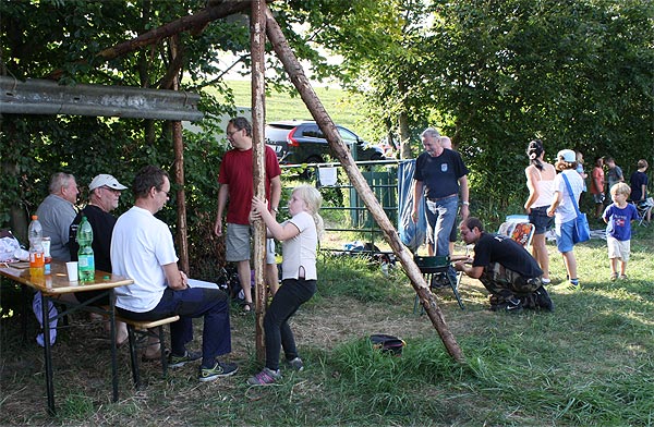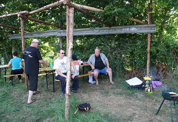 Vor dem Schirm (stehend) ein Gast, André (Wuppi) kam zu Besuch; 2015 will er wieder "mitmischen",
