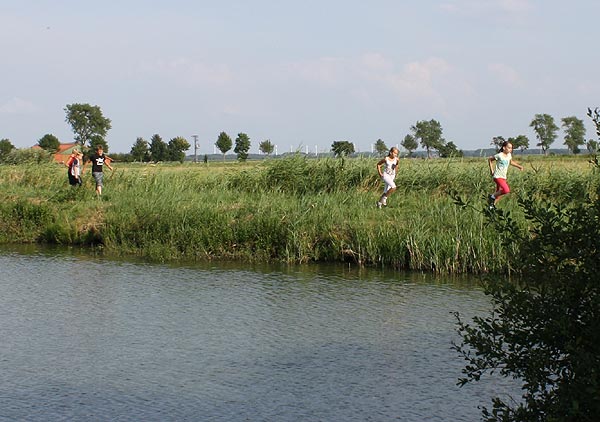 ging es mit den PKW's Richtung Offenwarden zum Angelteich.