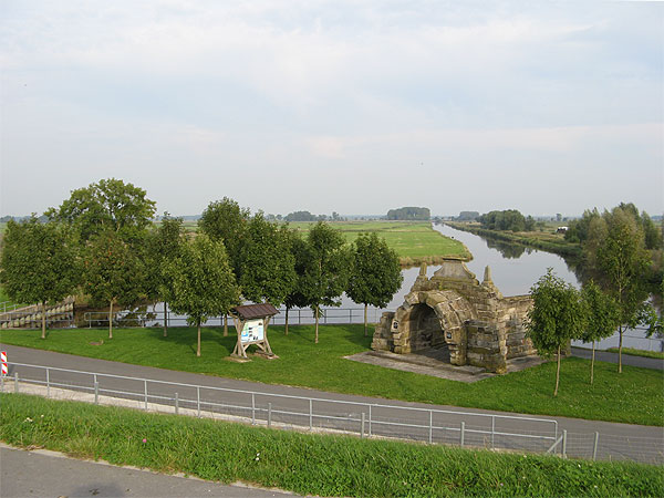 Oben im Bild kann man die "Neulander Brücke" in 1,6km Entfernung vom Siel erkennen.